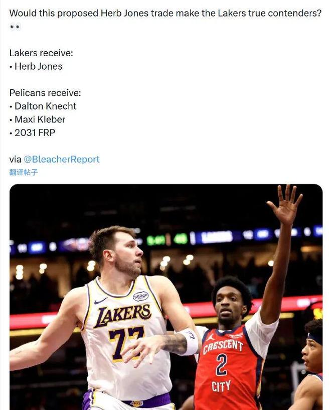 湖人队记Woike便对此表示,湖人目前能够提供的筹码,不足以让鹈鹕送出琼斯......